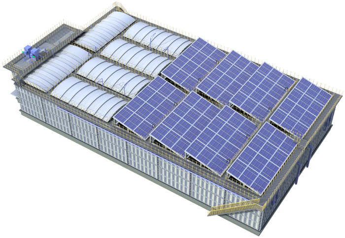 沭陽(yáng)縣項(xiàng)目在碳減排領(lǐng)域更樹立新標(biāo)桿。通過(guò)集約化設(shè)計(jì),鋼制模塊較混凝土結(jié)構(gòu)減重60%,運(yùn)輸能耗下降50%;施工全程采用干法作業(yè),杜絕揚(yáng)塵污染;項(xiàng)目后期的光伏一體化設(shè)計(jì)使廠區(qū)綠電自給率達(dá)30%。
