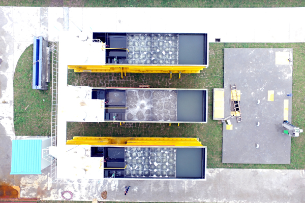 “高效仿生水草污水處理平臺”是針對鄉(xiāng)鎮(zhèn)、農(nóng)村等中小型污水處理項目開發(fā)的,是脫氮除磷村鎮(zhèn)污水處理專利技術(shù)(專利號ZL201310179893.6)的良好應用。該平臺改變了現(xiàn)有很多小型生活污水處理裝置雖然結(jié)構(gòu)上實現(xiàn)了一體化,但附屬設(shè)備多、結(jié)構(gòu)不緊湊、抗沖擊負荷差等缺點。