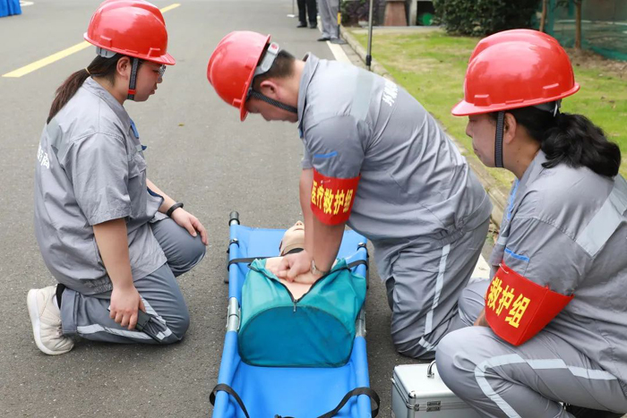 當(dāng)天下午2點(diǎn),演練正式開始。演練場(chǎng)景模擬華騏污水廠磁混凝沉淀池污泥泵房?jī)?nèi)員工在處理污泥泵出口壓力不正常過程中,未遵守作業(yè)規(guī)程,違規(guī)摘掉正壓送風(fēng)長(zhǎng)管呼吸器,吸入有毒氣體后中毒暈倒?,F(xiàn)場(chǎng)人員發(fā)現(xiàn)后立即上報(bào)公司領(lǐng)導(dǎo),經(jīng)理趕赴事故發(fā)生區(qū)域,成立現(xiàn)場(chǎng)指揮部,啟動(dòng)《有限空間作業(yè)事故專項(xiàng)應(yīng)急預(yù)案》,應(yīng)急救援人員穿戴正壓式空氣呼吸器,攜帶擔(dān)架深入污泥泵房將受傷人員救出;醫(yī)療救護(hù)人員對(duì)中毒人員進(jìn)行心肺復(fù)蘇,救援的同時(shí)撥打 120 急救電話進(jìn)行醫(yī)療救護(hù)求助。最終在各單位的全力配合下,圓滿完成此次應(yīng)急救援任務(wù)。