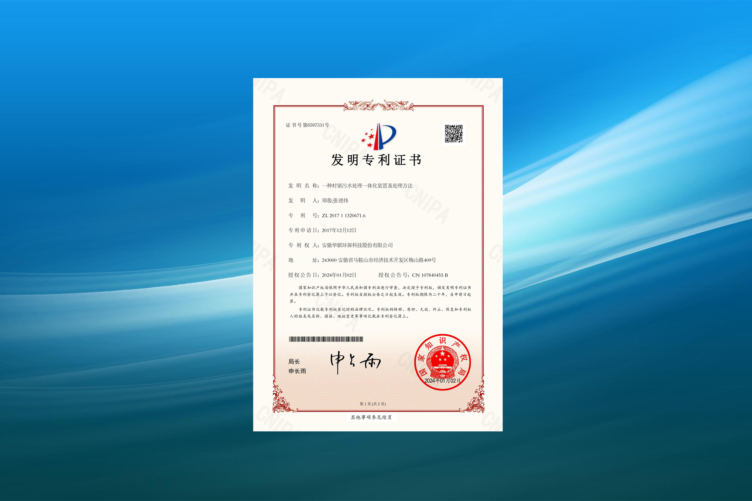 據(jù)國家知識產(chǎn)權(quán)局公告,安徽華騏環(huán)??萍脊煞萦邢薰救〉靡豁椕麨椤耙环N村鎮(zhèn)污水處理一體化裝置及處理方法”發(fā)明專利,授權(quán)公告號CN107840455B。專利摘要顯示,本發(fā)明公開了…